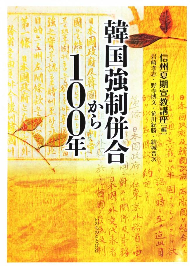 BOOK 13、『韓国強制併合から100年』2010年(2010年講演記録) 小寺肇 「はじめに」 岩崎孝志「近代日本が韓国でしたこと―武力干渉から「併合」まで」 野寺博文「韓国併合一〇〇年と韓国教会」 笹川紀勝「韓国…