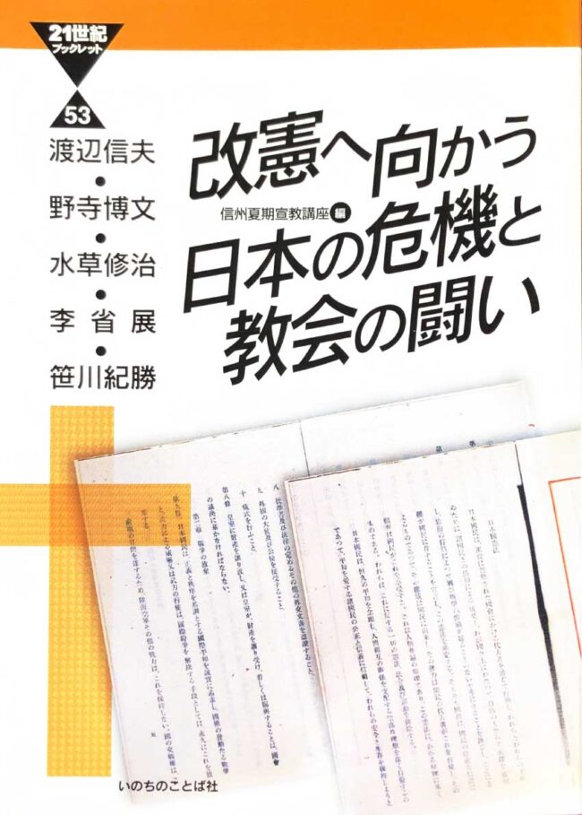 BOOK 16、『改憲に向かう日本の危機と教会の闘い』2014年(2013年講演記録) 21世紀ブックレット53 小寺 肇「はじめに」 渡辺信夫「権力に対する教会の闘い―宗教改革の事例より」 野寺博文「原発問題と死の商人…