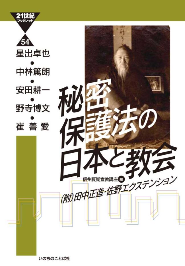 BOOK 17、『秘密保護法の日本と教会』2015年(2014年講演記録) 21世紀ブックレット54 小寺 肇「はじめに」 星出卓也「機密をめぐって日本国憲法はどのように空文化されてきたか」 中林篤朗「田中正造に学ぶキリ…
